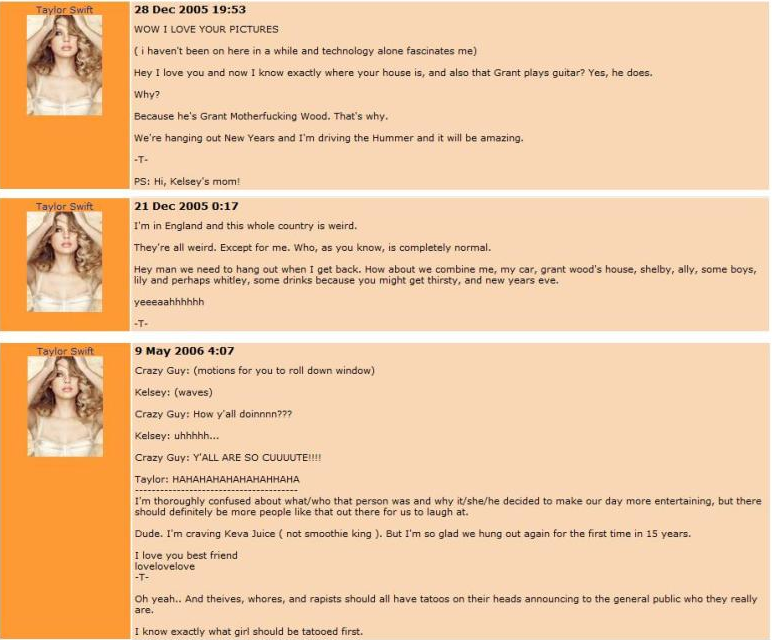 Taylor Swift S Alleged Myspace Surfaces With Hillarious Photos And Comments Daily Mail Online